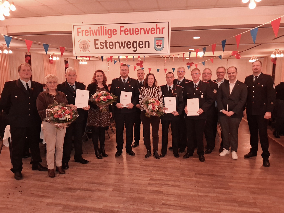 Esterwegen – Im festlichen Rahmen des Winterfestes wurden mehrere Mitglieder der Freiwilligen Feuerwehr Esterwegen für ihr langjähriges Engagement und ihre besonderen Verdienste im Feuerwehrwesen geehrt.