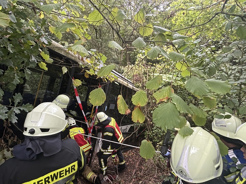 - Rettung von Fahrgästen aus einem verunglückten Bus am Abhang